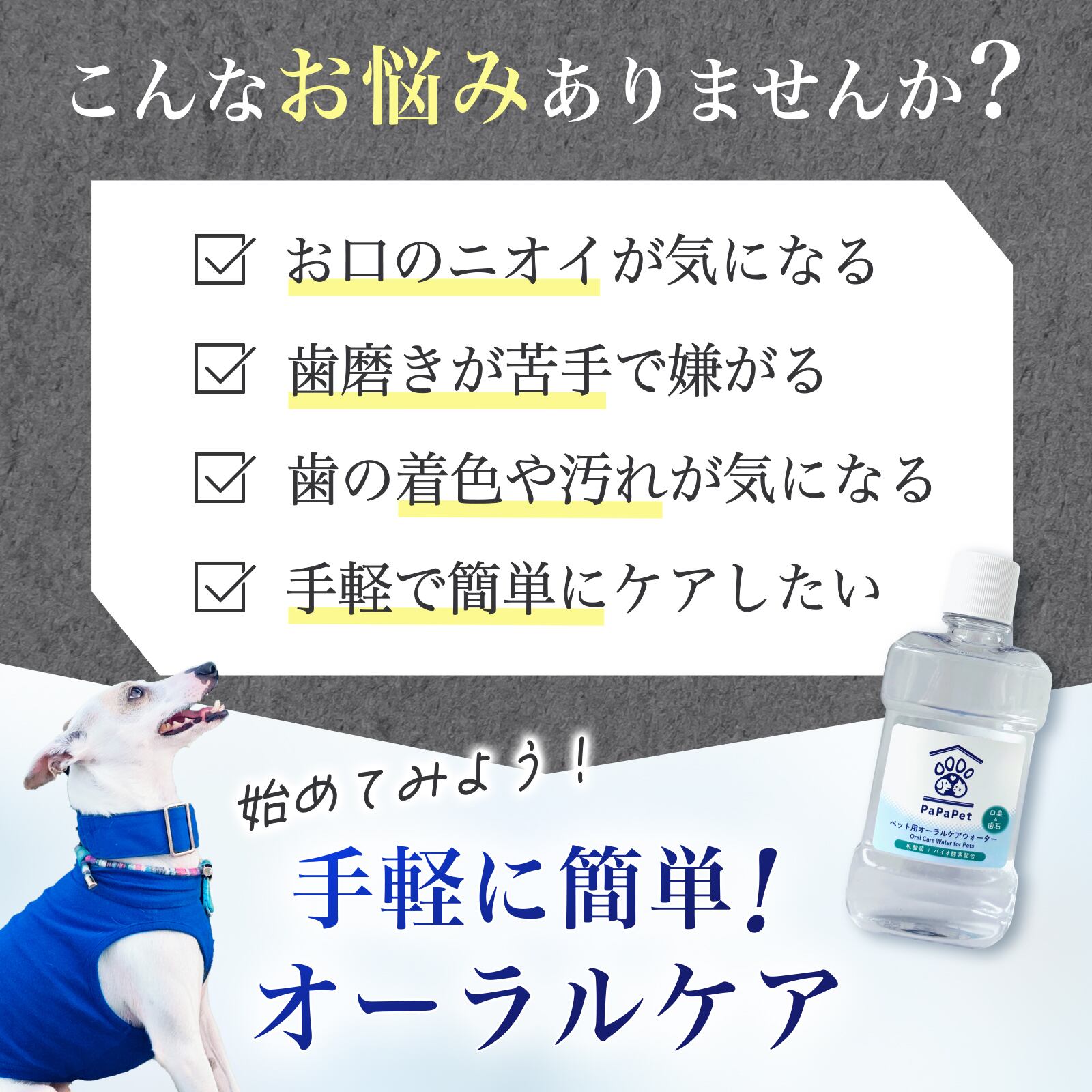 お父さんのような愛で、愛犬・愛猫のお口をやさしく守ります。