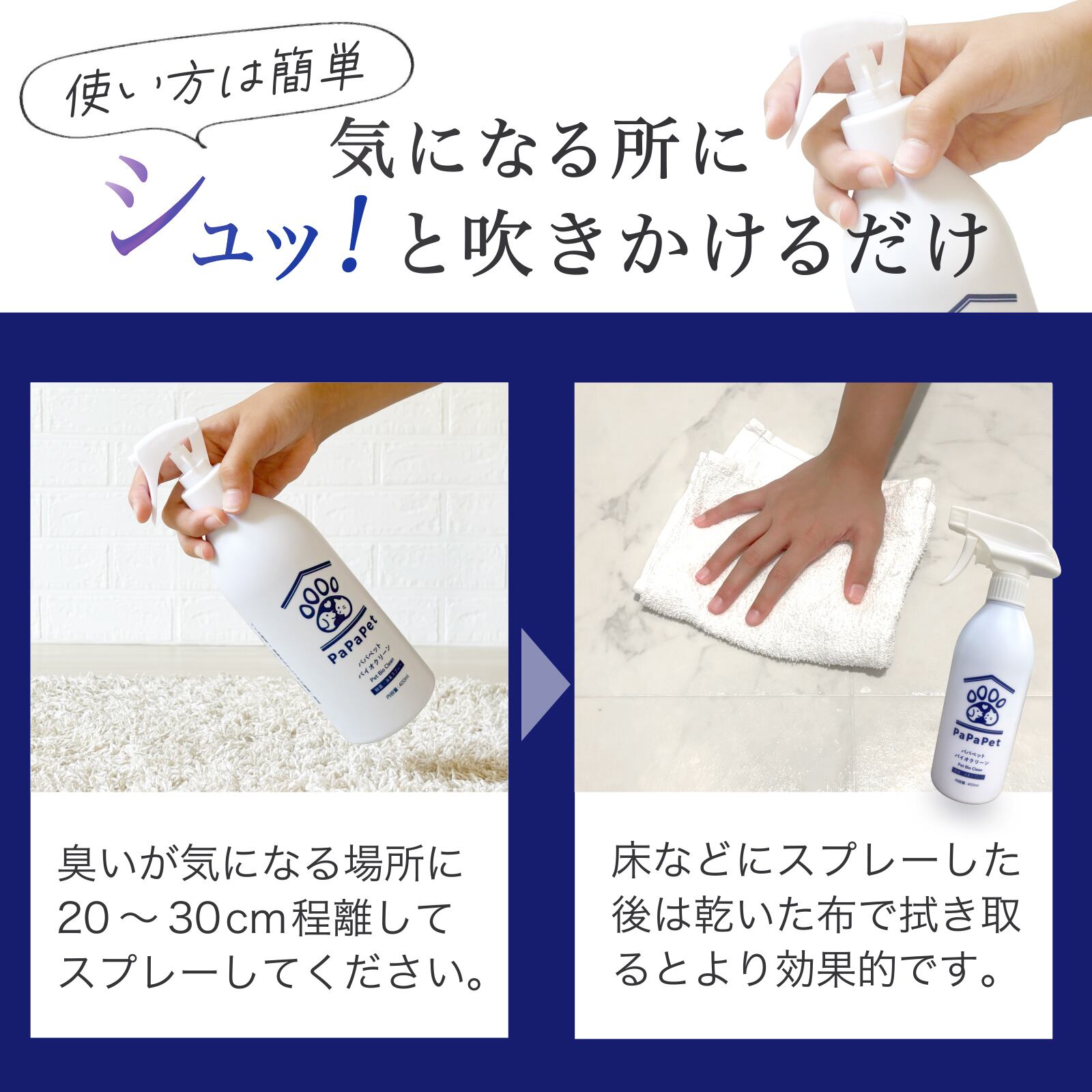 400mlの使いやすいスプレーボトルで、犬や猫の生活空間に簡単に使用できます。