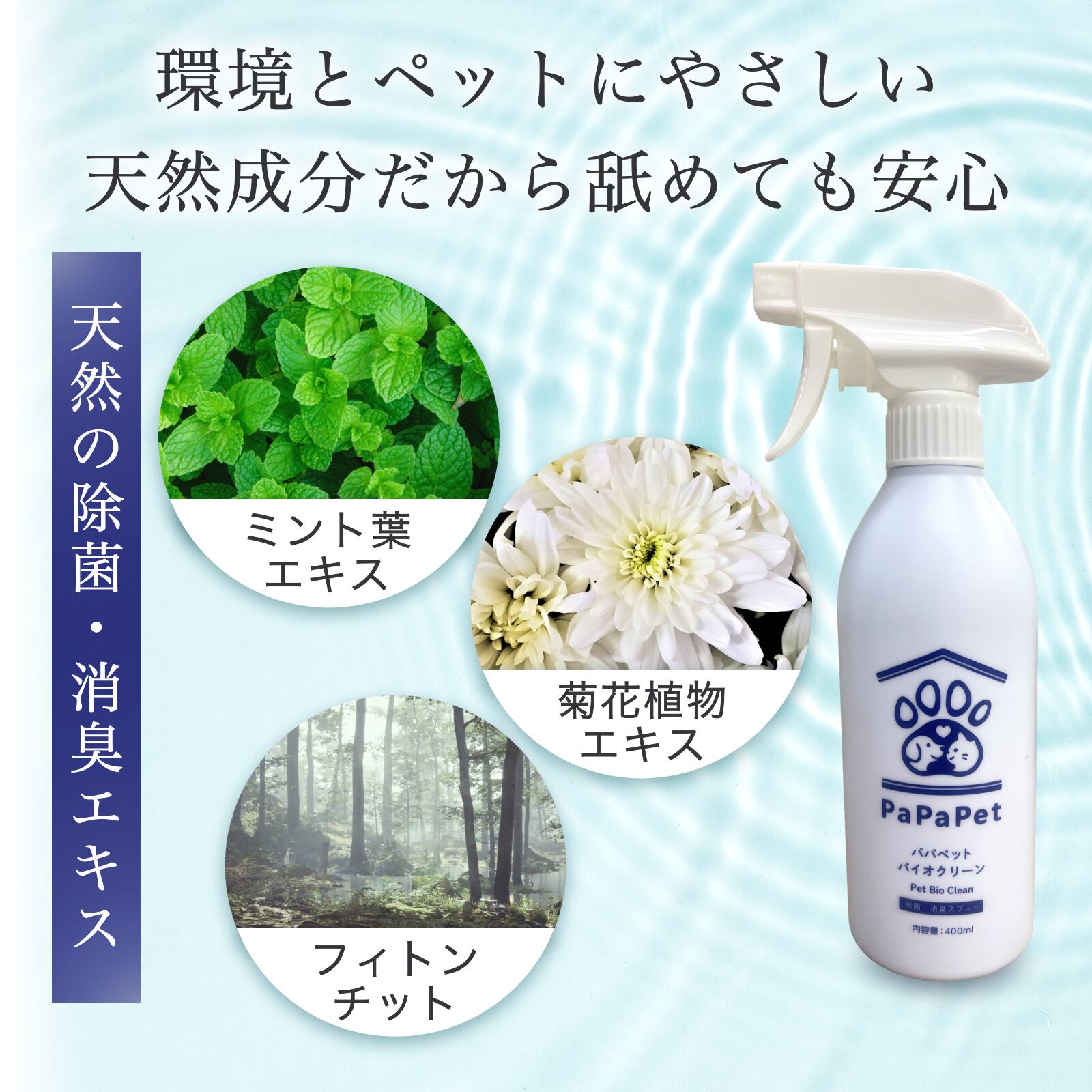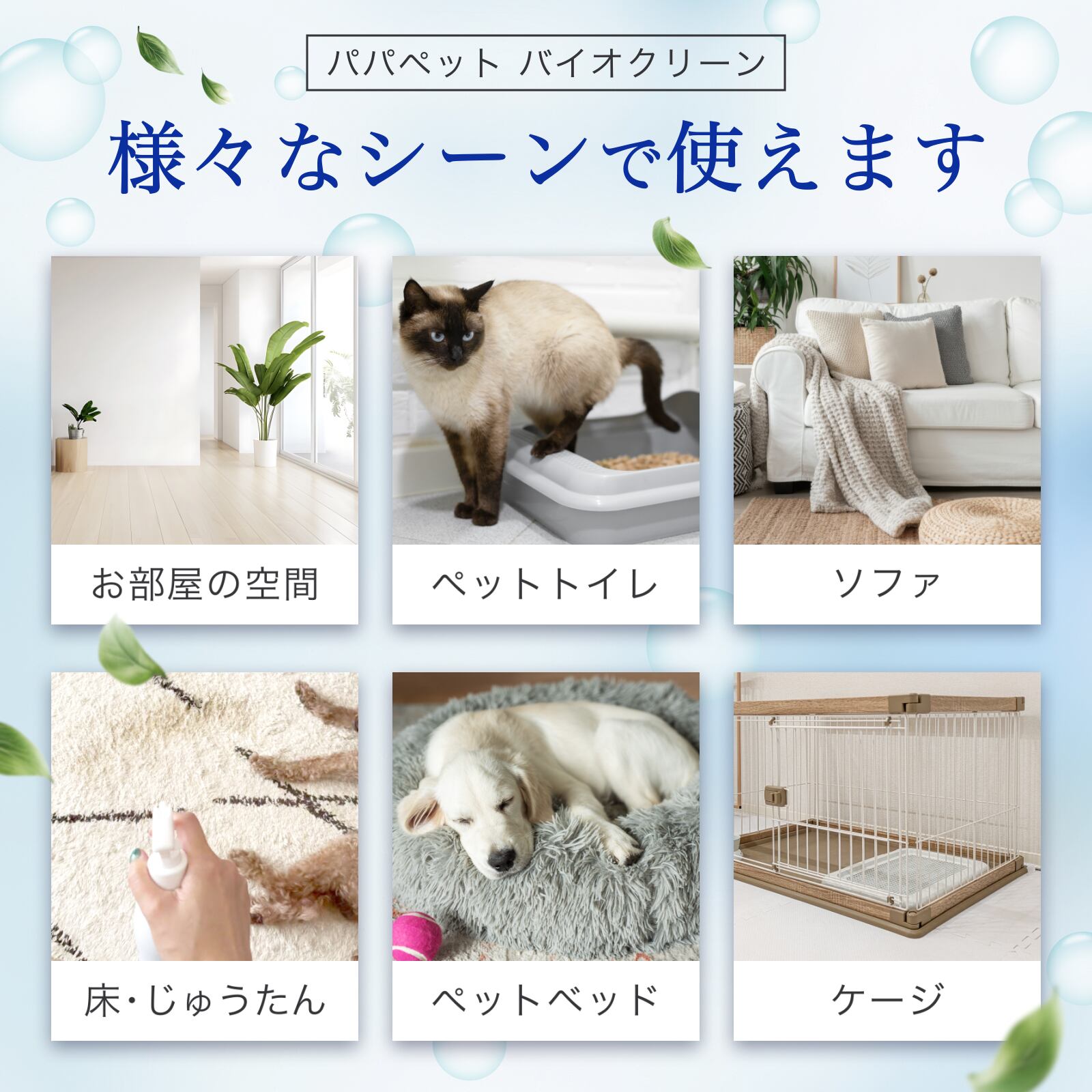 PaPaPetのバイオクリーンは、ペットとの快適な暮らしをサポートする除菌・消臭スプレーです。